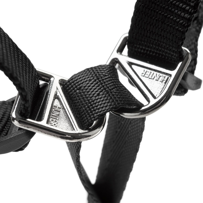 A speciálisan kialakított fémgyűrűk megakadályozzák, hogy az orrszíj lecsússzon az orrról.