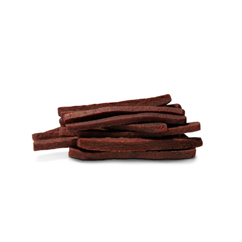 Kiadós, enyhén szárított szarvashús csíkokalacsony zsírtartalommal, hozzáadott mesterséges színezék, aroma vagy tartósítószer, hozzáadott cukor vagy gabona nélkül.