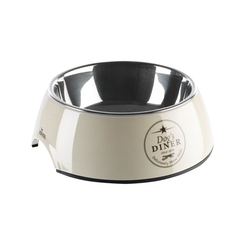 Melamin burkolatú etető- vagy itatótál. Kivehető rozsdamentes acél edénnyel. Trendi American Diner mintával. Alul csúszásmentes gumiszegély. Tartós, ütés- és karcálló. Könnyen kezelhető és mosogatógépben mosható, élelmiszer biztonságos.