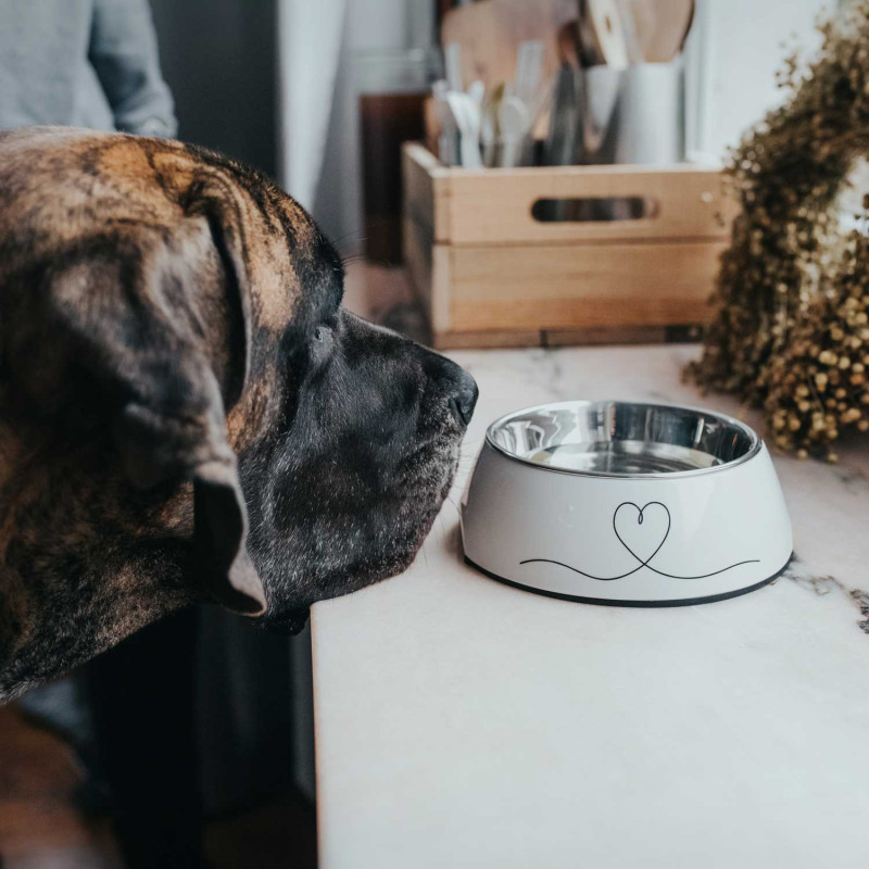 Melamin etető- vagy itatótál. Kivehető rozsdamentes acél edénnyel. Szívnyomattal. Alul csúszásmentes gumiszegély. Tartós, ütés- és karcálló. Könnyen kezelhető és mosogatógépben mosható. Élelmiszer biztonságos.