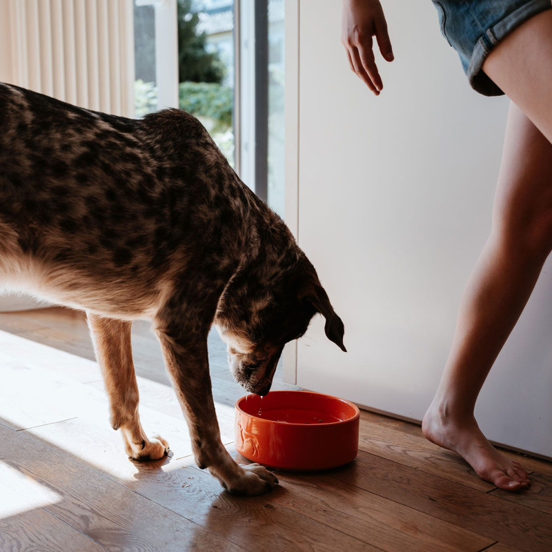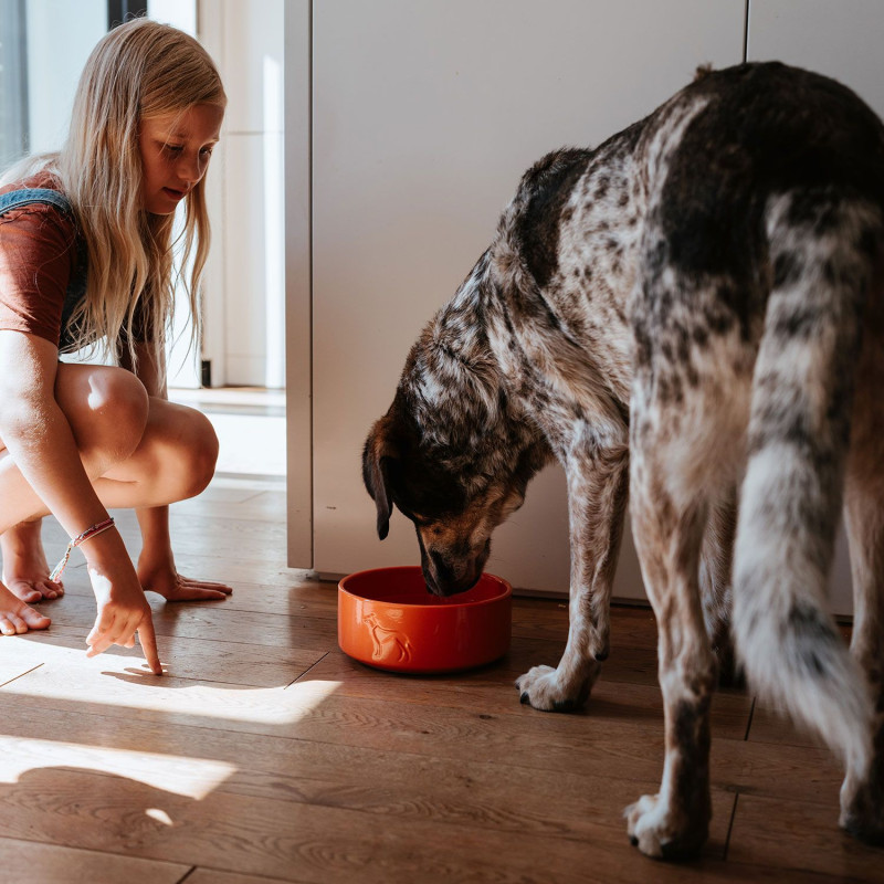 Az alját körülvevő szilikon peremnek és a viszonylag nagy súlynak köszönhetően a tál különösen biztonságosan áll, és az érzékeny kutyák is könnyen elfogadják.