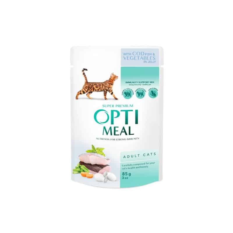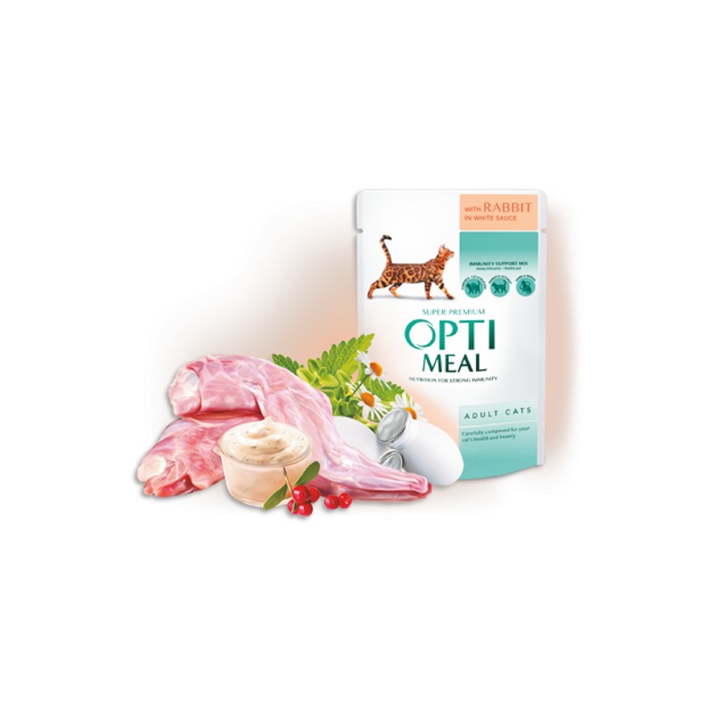 OPTIMEAL ™Teljes értékű, szaftos állateledel felnőtt macskáknak nyúlhússal fehér szószban