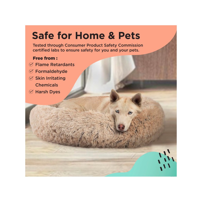 A fánkos bújócska tartós, vegán nylonból készült, és CoziLoft szálakkal van feltöltve, így kedvence azonnal prémium, puha, luxus kényelembe burkolózik. A nyugtató kutyaágyunkban található poli töltet akár 3-szor hosszabb ideig tart, mint a hagyományos kisállatágyak, ami azt jelenti, hogy hosszabb kényelmet, tartást és esztétikai megjelenést biztosít. Mélyebb éjszakai pihenésre vagy frissítő nappali szunyókálásra ösztönöz, nyugtató kutyaágyunk különleges, mert gondosan megterveztük, hogy optimális nyak-, ízület- és izomtartást biztosítson.