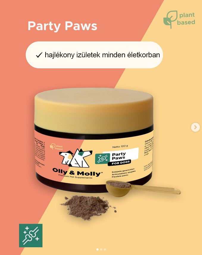 Egy egészséges mozgásrendszer elengedhetetlen a kutyád életminőségéhez. Az Olly & Molly Party Paws természetes támogatást nyújt az egészséges csontoknak és rugalmas ízületeknek. Így kutyusod szabadabban mozoghat, és hosszabban élvezheti az aktív, fájdalommentes életet!
