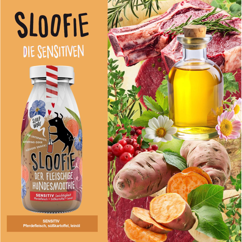 A SLOOFIE reform szemléletű, kézműves és funkcionális kiegészítő eledel, amely kizárólag tiszta, természetes összetevőkre épül. Németországban készül, kis szériás gyártással, minden felesleges adalék nélkül. A receptúra átgondolt, a minőség kompromisszummentes, a fókusz pedig a tiszta összetevőkön és azok jótékony hatásán van. Pürésített állagának köszönhetően könnyen adható, és bármilyen etetési formába jól illeszthető – legyen szó tápos, főzött, BARF vagy vegyes étrendről, miközben a kutyák számára élmény marad az etetés. 100% természetes, emberi fogyasztásra alkalmas prémium alapanyagokból készül. Nem tartalmaz hozzáadott cukrot vagy glutént, mesterséges adalékanyagot, színezéket és tartósítószert.