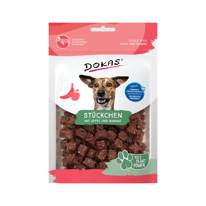 Húsmentes táplálékkiegészítő értékes összetevőkkel, például almával és banánnal az egészséges és kiegyensúlyozott étrendért.
